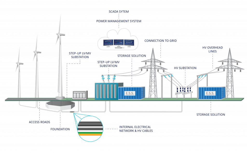 Scope: Consortium-led EPC works including construction of roads and collector networks, foundations, and installation of 34 wind turbines, 200 MW of generation capacity.