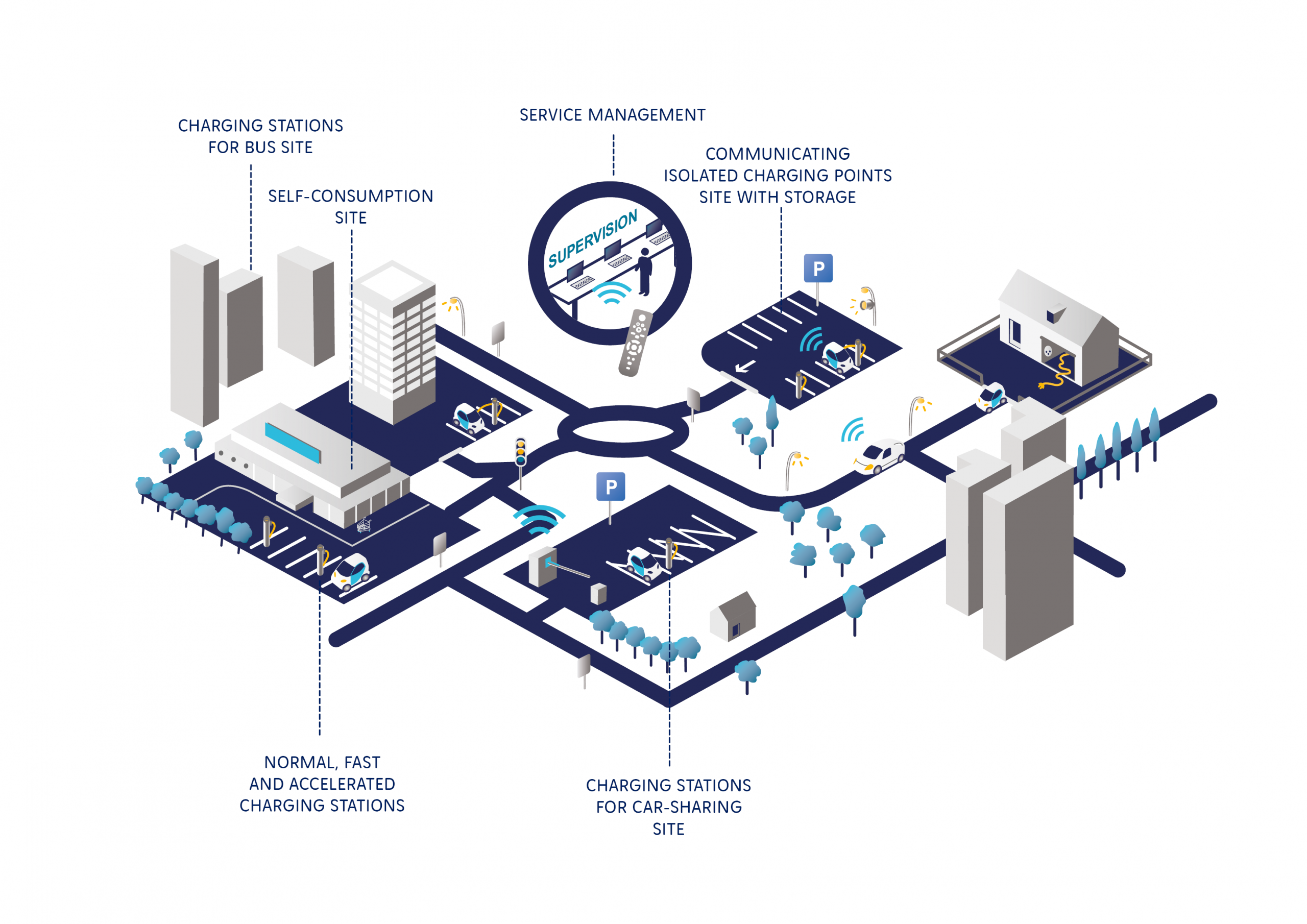 • Smart, user-focused e-mobility platforms combining connected charging stations, energy management, supervision tools, and customized software to improve performance, availability, and user experience.