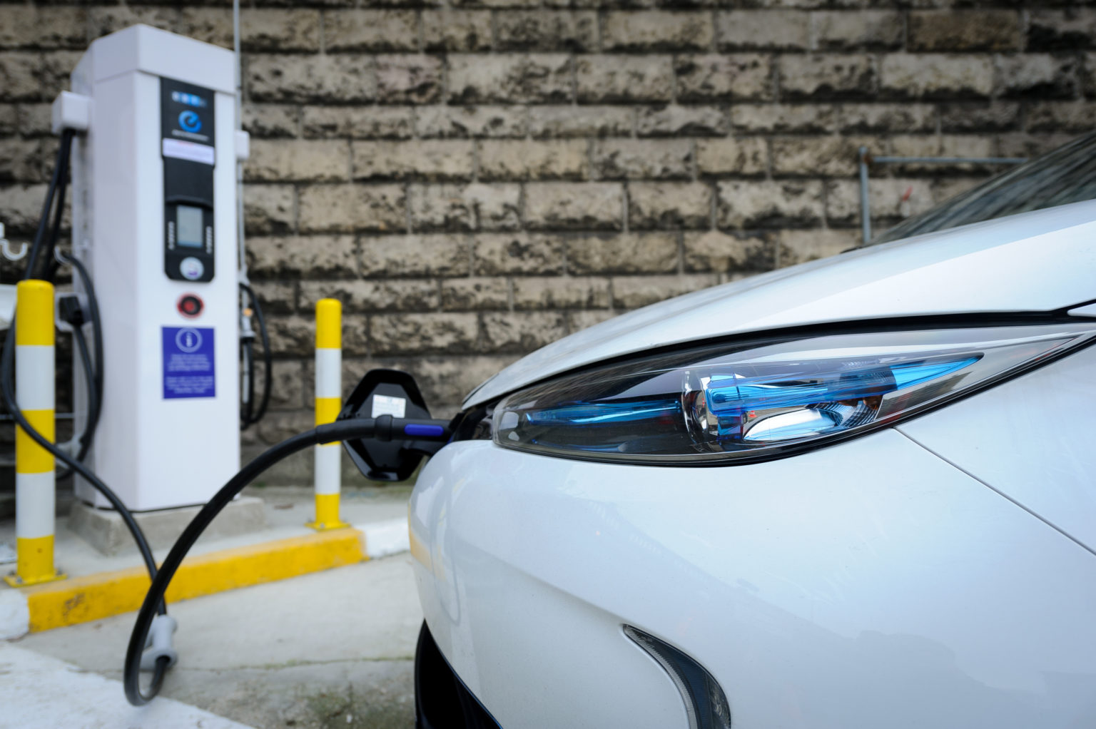 Public electric vehicle charging stations installed in a car park, showing accessible EV charging points for everyday mobility