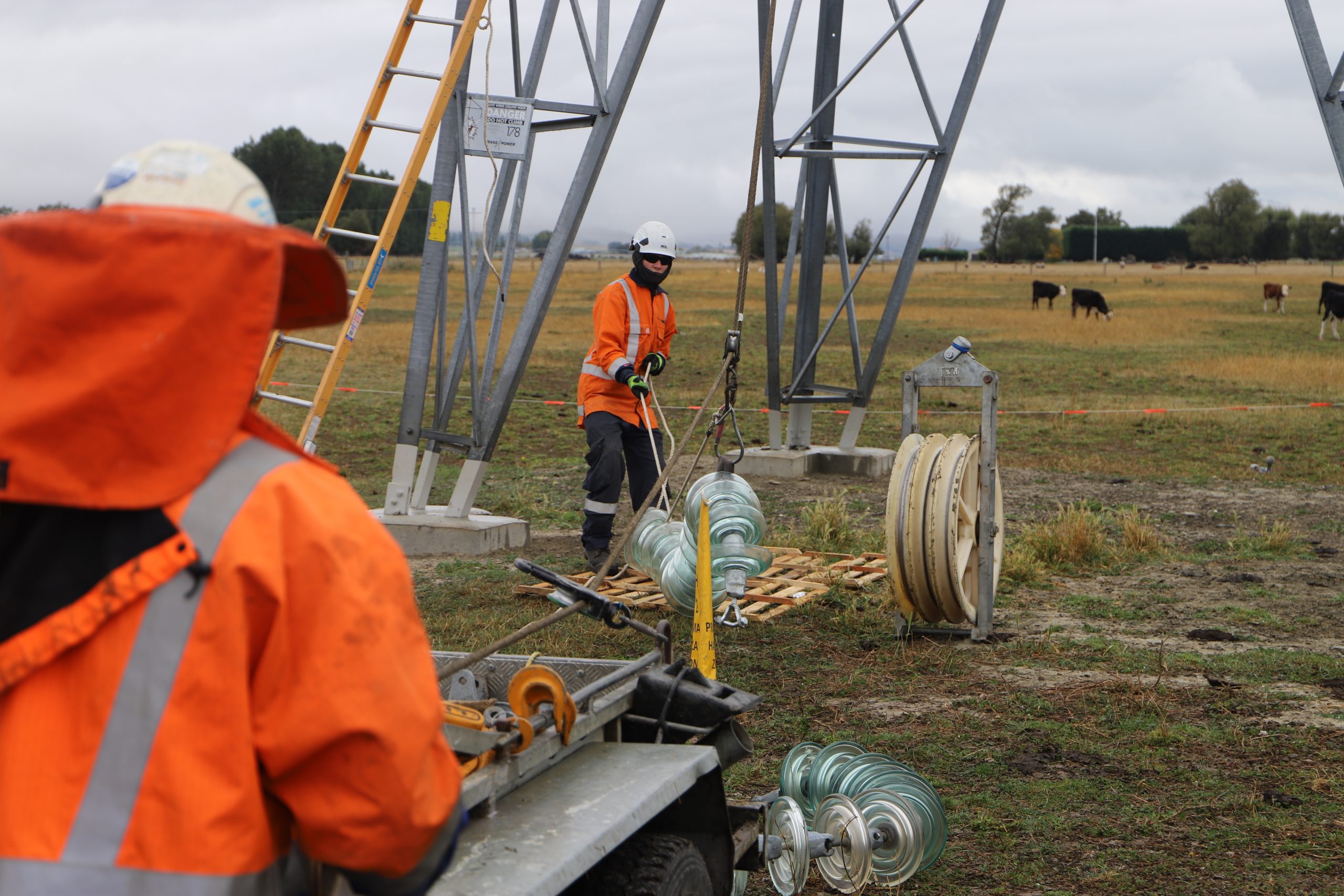 Electrix’s (Omexom in New Zealand) wiring crews have replaced the single electrical conductor per phase with two conductors per phase, an operation known as duplexing, to increase the capacity of this transmission line from about 600MW at present, to about 1000 MW.