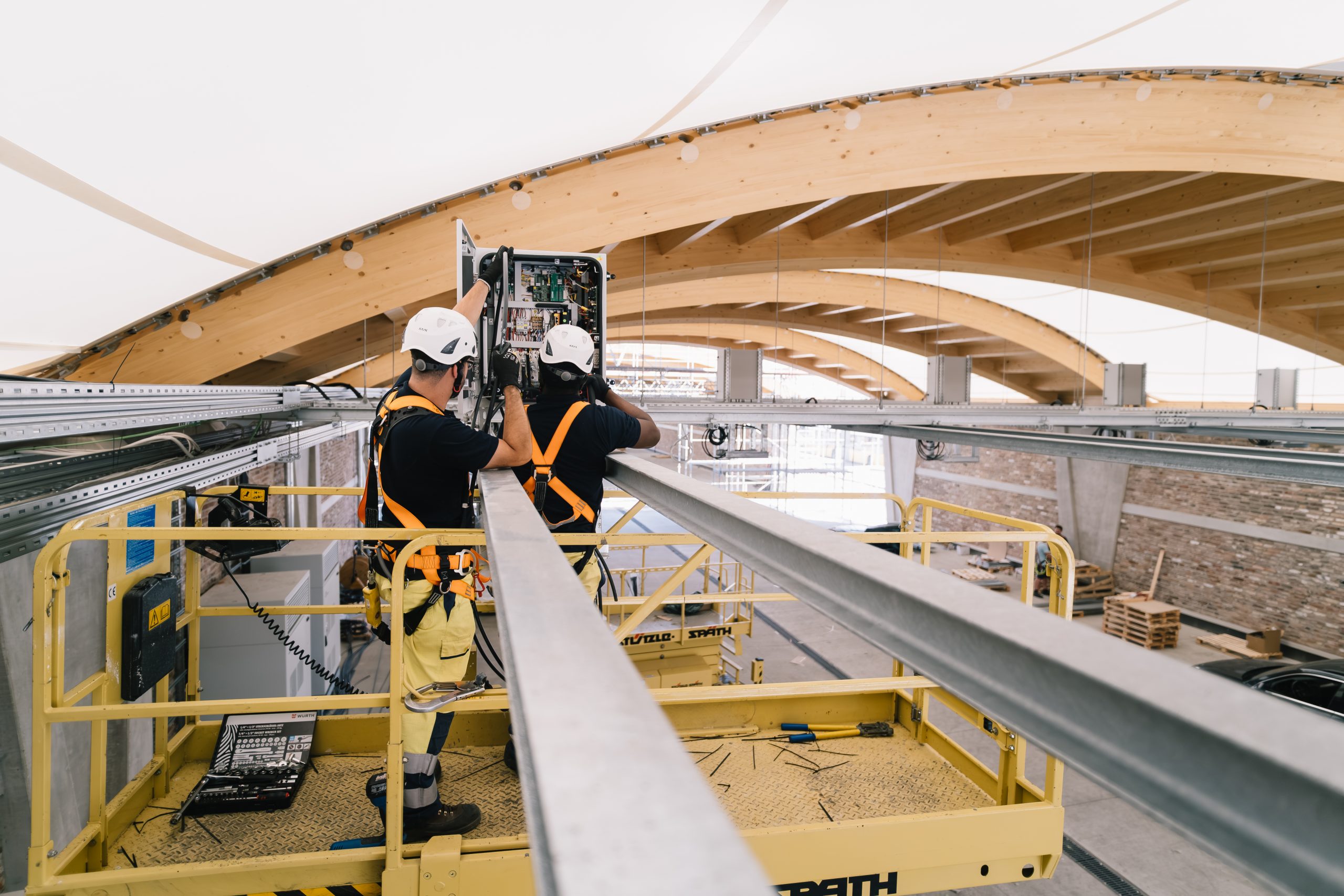 The combination of energy technology, steel construction, and communications technology is unique in this form. Charging rectifier cabinets convert alternating current into direct current and control the pantographs precisely and efficiently.