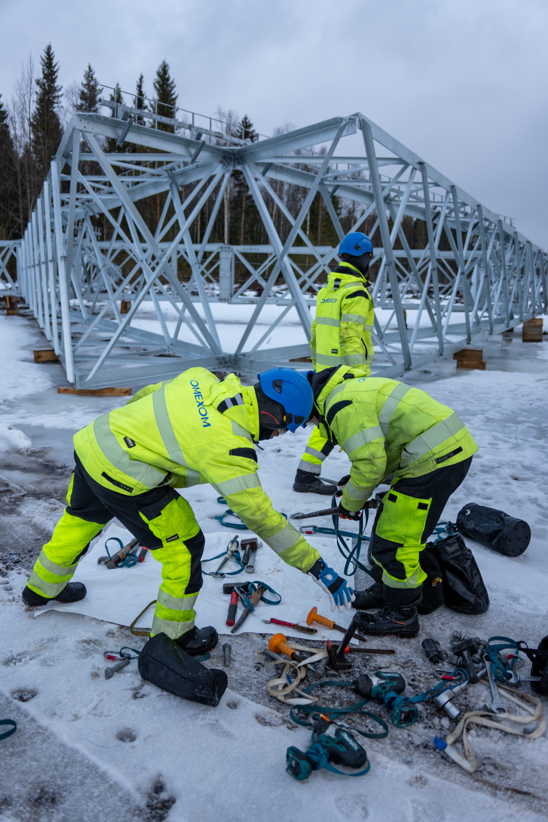 Located in remote, swampy terrain near Vuolijoki, making winter construction essential, the teams have been working on frozen ground. Despite ice cold conditions, progress on the Järvilinja 1 transmission project remains steady as it moves toward completion in 2026, serving as an exemplary model of Omexom’s end-to-end EPC service delivery.